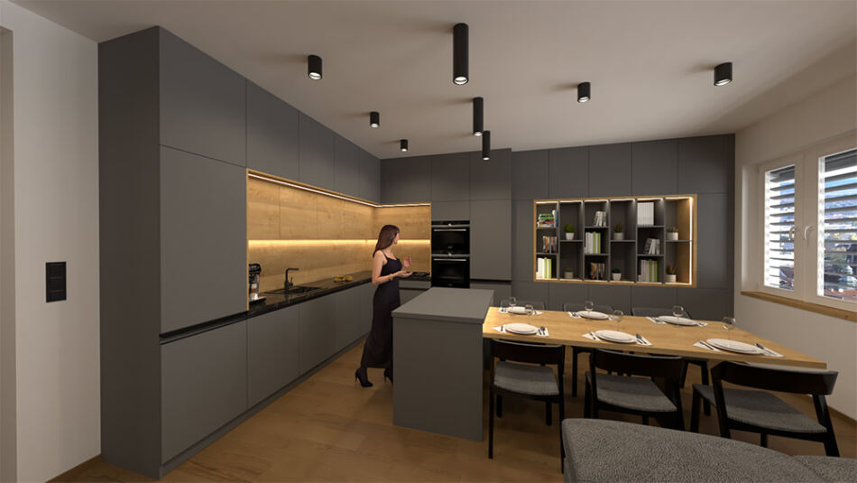 Připravíme všechny potřebné technické výkresy k provedení rekonstrukce. Ty budou sloužit jako podklady pro bourací práce, instalaci nových rozvodů elektřiny či vody, výrobu a instalaci kuchyňské linky a nábytku na míru.